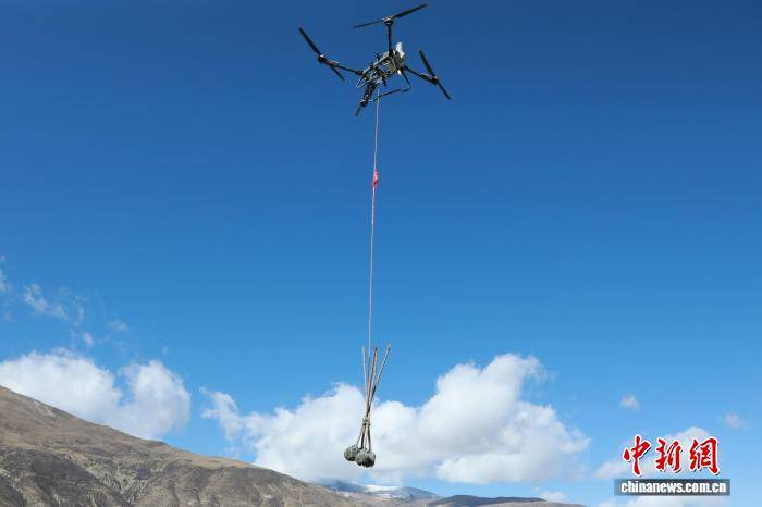 圖為無人機(jī)運(yùn)苗。山南市委宣傳部 供圖